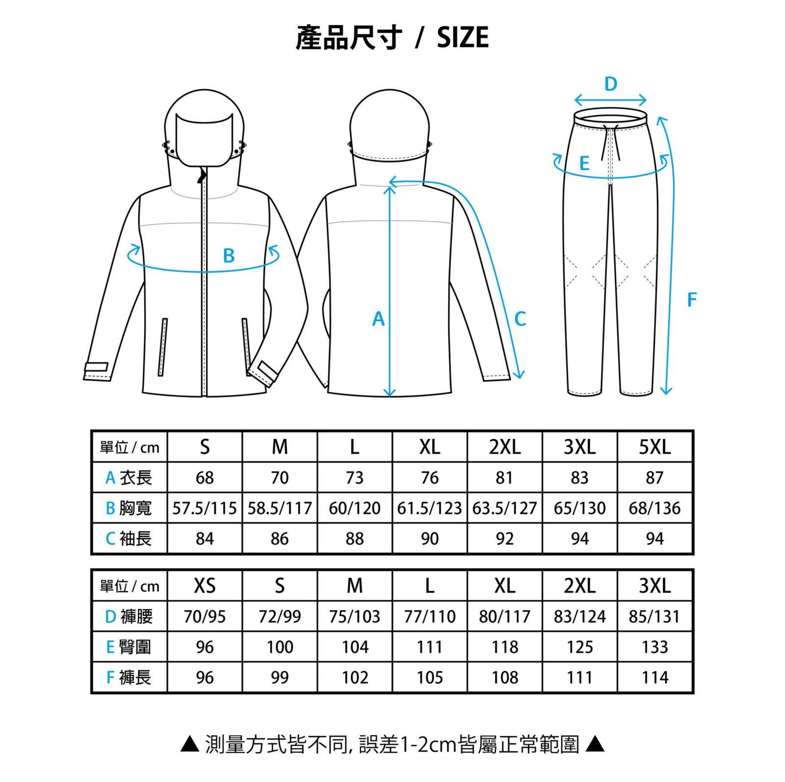 衣服尺寸_揹客夾克-牛仔雨褲