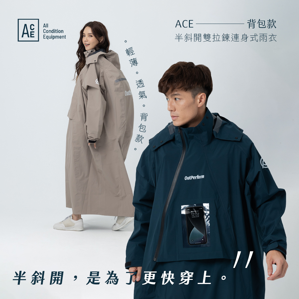 首頁 - 商店 - 可容納背包款式 - 背包款-ACE半斜開雙拉鍊連身式雨衣